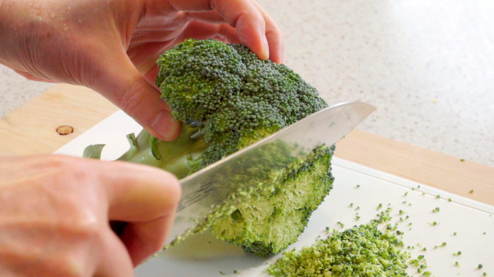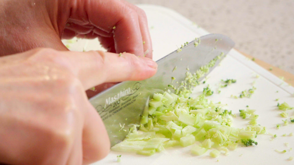 ブロッコリーは花蕾、茎ともにみじん切りにします。