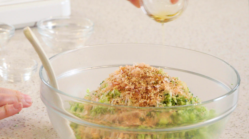 鰹節・いりごま・ごま油を入れ、