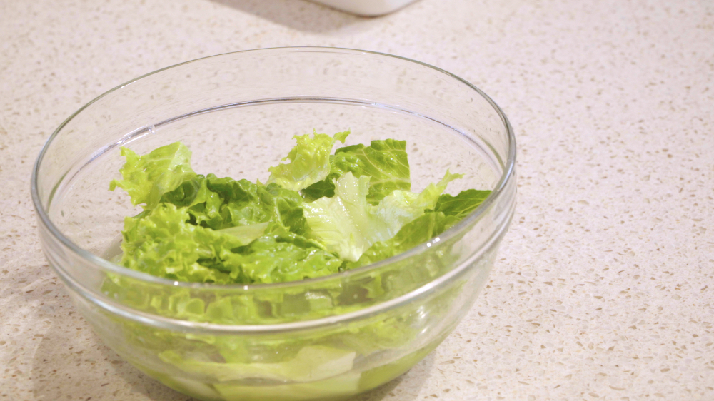 レタス(100g)は一口大にちぎり、水切りをします。