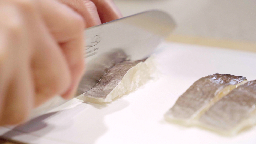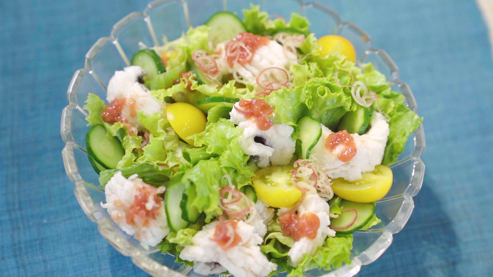 湯引きした鱧は氷水に取り、水気を切ります。