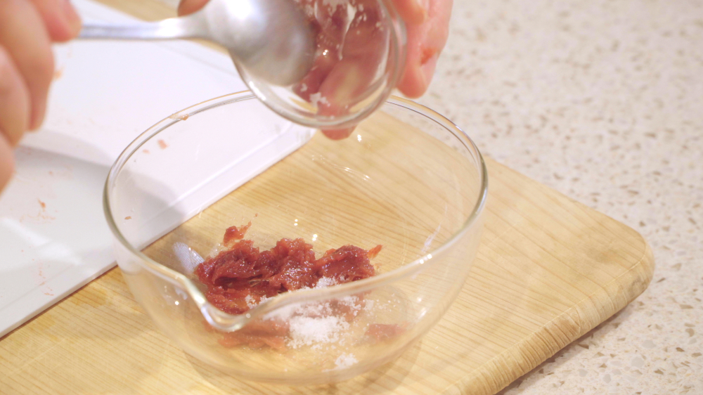 梅干し(1個)の種を取り、